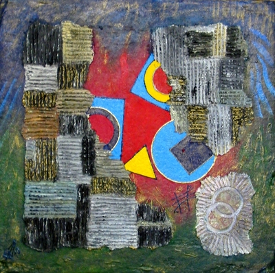 acrylique et papier mâché sur isorel mou.