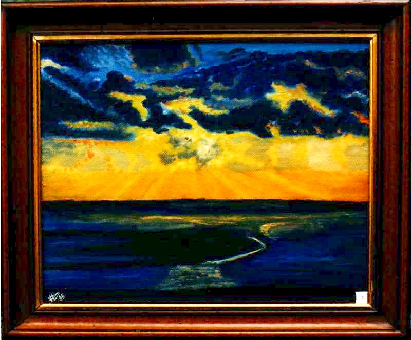 "Coucher de soleil sur la Garonne 2", huile sur isorel 1995 . 57 x 49 cm